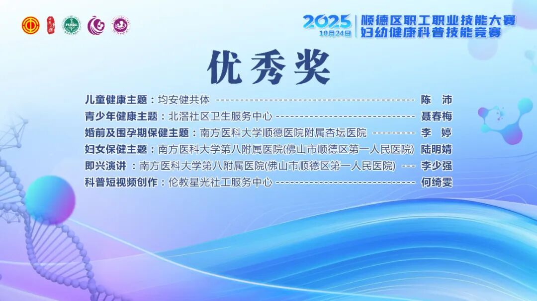 2025年10月24日,由顺德区总工会、区卫生健康局联合主办,佛山市医师协会、顺德区妇幼保健协会、广东医科大学顺德妇女儿童医院承办的“2025年顺德区职工职业技能大赛——妇幼健康科普技能竞赛”在顺德区大良仙泉酒店隆重举行。本次竞赛旨在通过以赛促学、以赛促练,全面提升全区妇幼健康科普传播能力,让健康知识真正融入百姓生活珺牛策略,筑牢家庭幸福的健康根基。